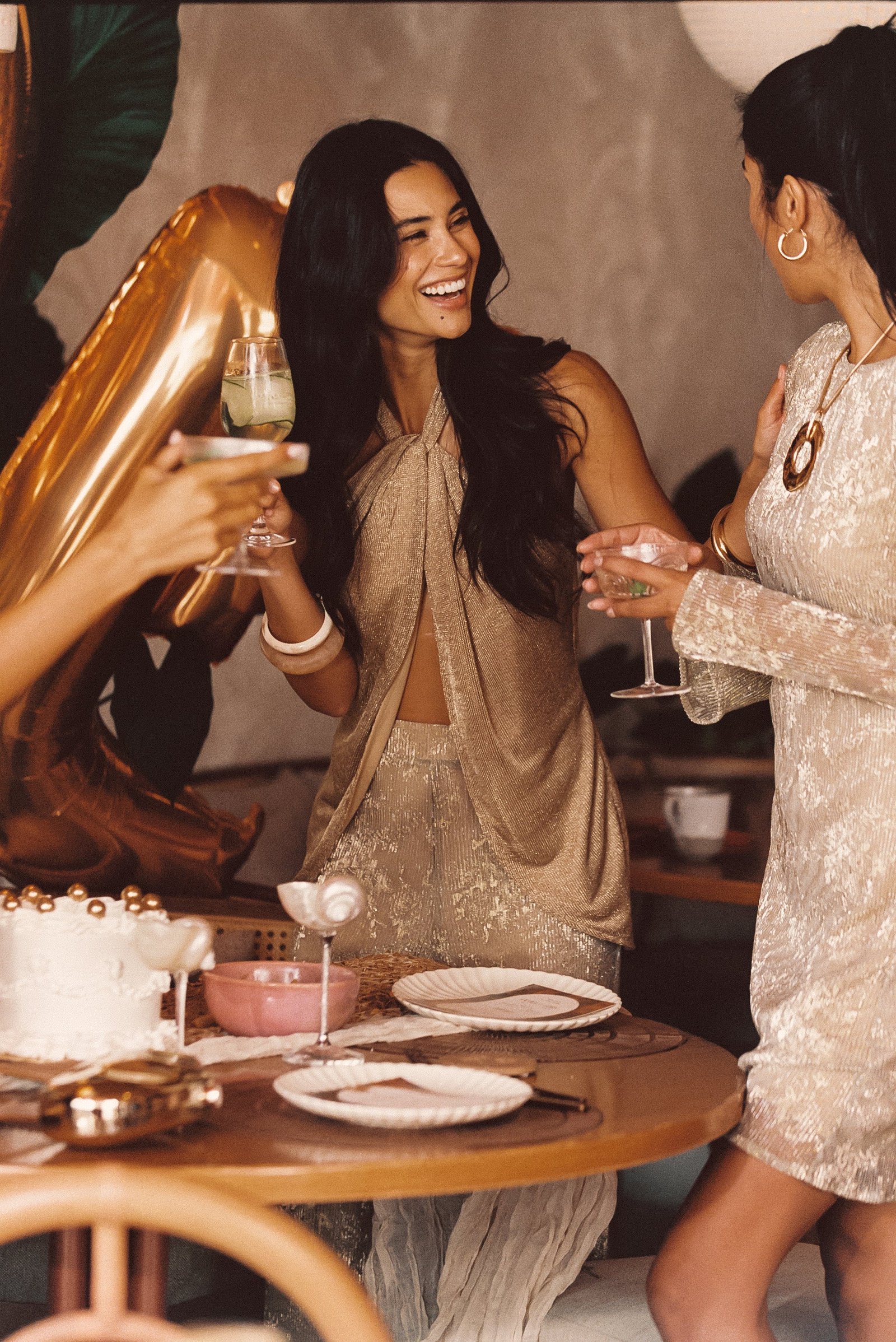 Saved. Shared. Sold out. and now Reinvented. With the halter neckline and long flyaway silhouette you love, now in the dreamy gold lurex knit material. Pair with micro mini skirts and shorts and shimmery accessories and own the spotlight wherever you go.