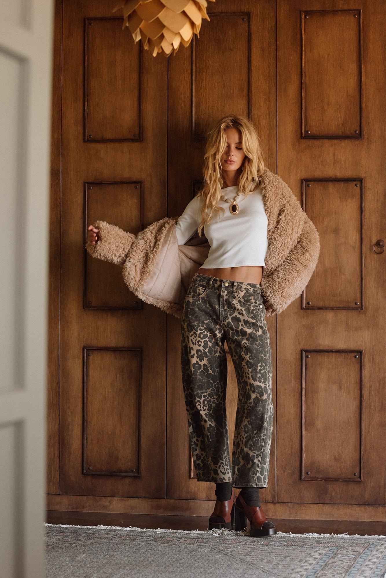 The Muse Leopard Barrel Jeans take the fit you love from our best-selling Muse Barrel Jeans and give it a wild upgrade. Mid-rise, straight-leg, and ankle-length with dart detailing, these leopard-print jeans make a statement without trying too hard.