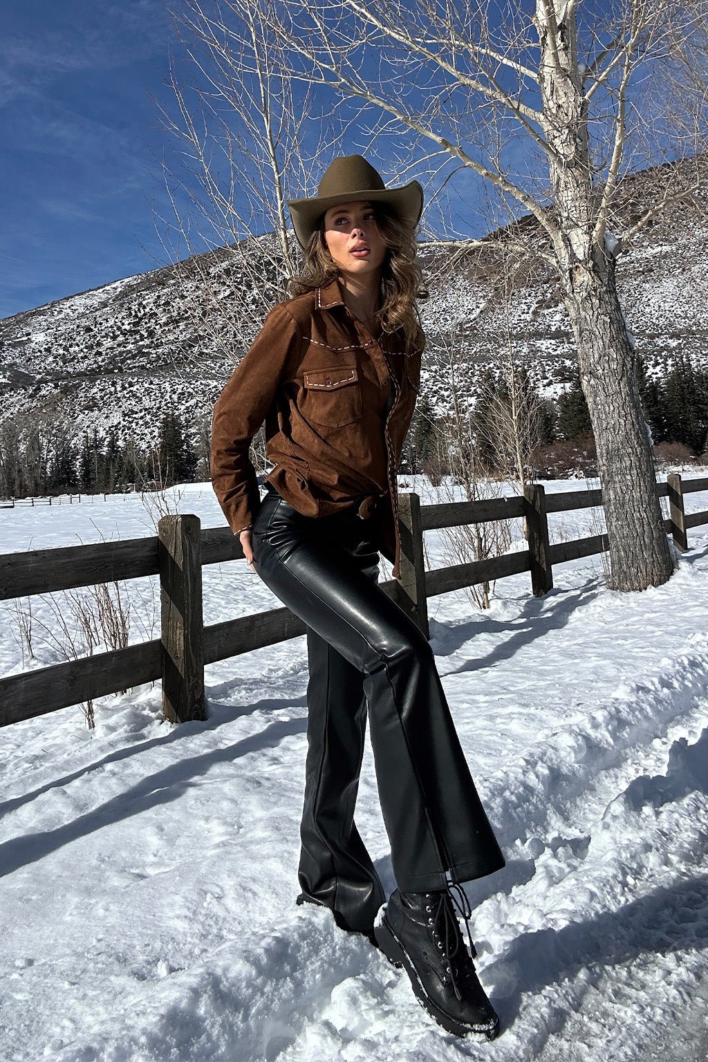 Rustic and refined – the Rustic Pines Suede Button Down is country chic and timeless. Made from a gorgeous soft suede with hand stitched detailing, this western inspired is straight out of a winter mountain retreat. Saddle up and complete the look with a cowboy hat and boots.